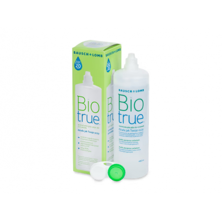 Víceúčelový roztok pro kompletní péči o všechny druhy měkkých kontaktních čoček včetně silikonhydrogelových. Udržet oči v pohodlí a zdravé při nošení kontaktních čoček je důležité zejména dnes, kdy méně spíme a více používáme počítač. Ke správné péči o čočky a vaše oči byl vyvinut roztok, který pracuje stejně jako vaše oči. Víceúčelový roztok Biotrue zvlhčuje stejným způsobem, jako to dělají vaše oči, obsahuje totiž tu samou lubrikační látku a jeho pH je nastaveno na stejnou hladinu, jako mají zdravé slzy. Víceúčelový roztok Biotrue dále zabraňuje denaturaci určitých proteinů v slzách, a tak rovněž přispívá k čistotě čoček a nemikrobiálnímu prostředí, tedy zdraví vašich očí. Složení: Hyaluronan, sulfobetain, poloxamin, kyselina boritá, boritan sodný, edetát disodný a chlorid sodný a duální dezinfekční systém (polyaminopropyl biguanid 0,00013% a polyquaternium 0,0001%) Velikost balení: průhledná lahev 60ml, 300ml. Součástí balení pouzdro. GTIN: 07391899851709